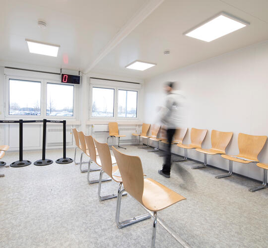 I väntrummet på vaccinationscentraler är det möjligt att observera vaccinerade personer. ELA Container kan placera väntrummet i direkt anslutning till antingen behandlingsrummet eller första hjälpen-rummet, efter kundens önskemål, och tillhandahålla stolar och vilstolar. Från planering till installation vidtar ELA alla nödvändiga åtgärder för att ge kunden en nyckelfärdig mobil vaccinationscentral så snart som möjligt. Om du har fler frågor kan ELA-teamet hjälpa dig via direktlinjen för service.