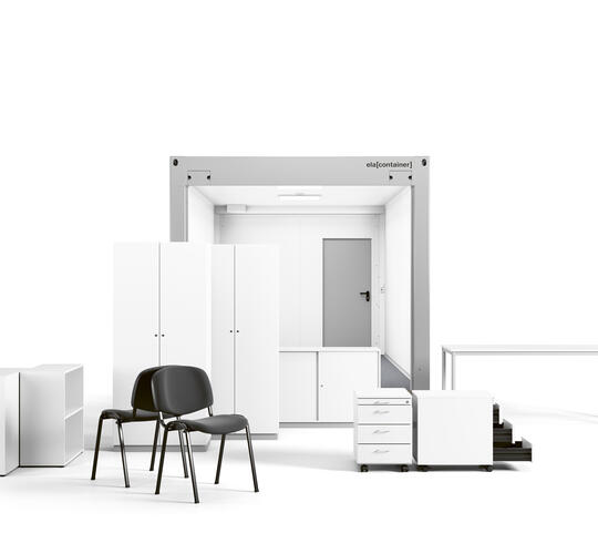 ELA Container kan leverera den mobila vaccinationscentralen till valfri plats och, om så önskas, utrusta den fullt ut för omedelbar användning. ELA har ett omfattande utbud av möbler till sitt förfogande, inklusive standarddelar som bord, stolar, skåp och kökselement. ELA:s modulutrymmen är utrustade med eluttag, LED-lampor, anslutningar för IT och Internet, brandvarnare och andra säkerhetsrelevanta funktioner. ELA erbjuder också attraktiva tillbehör i form av akustikpaneler och whiteboardtavlor.